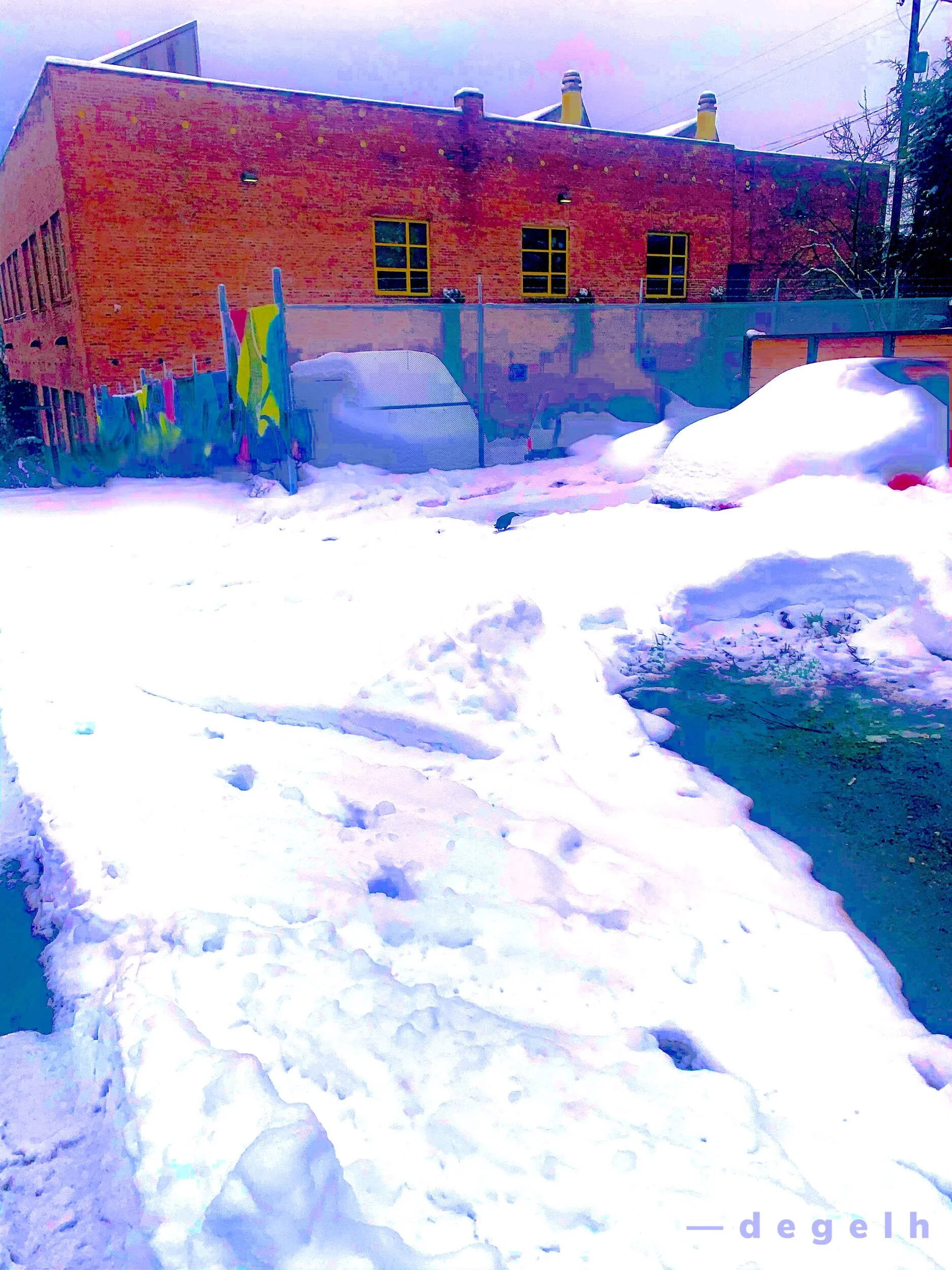 Leftover snow ranging from about 6” to more than a foot in areas. Crows were inspecting the cleared out areas. Neighbors taking turns clearing parts of walkways.